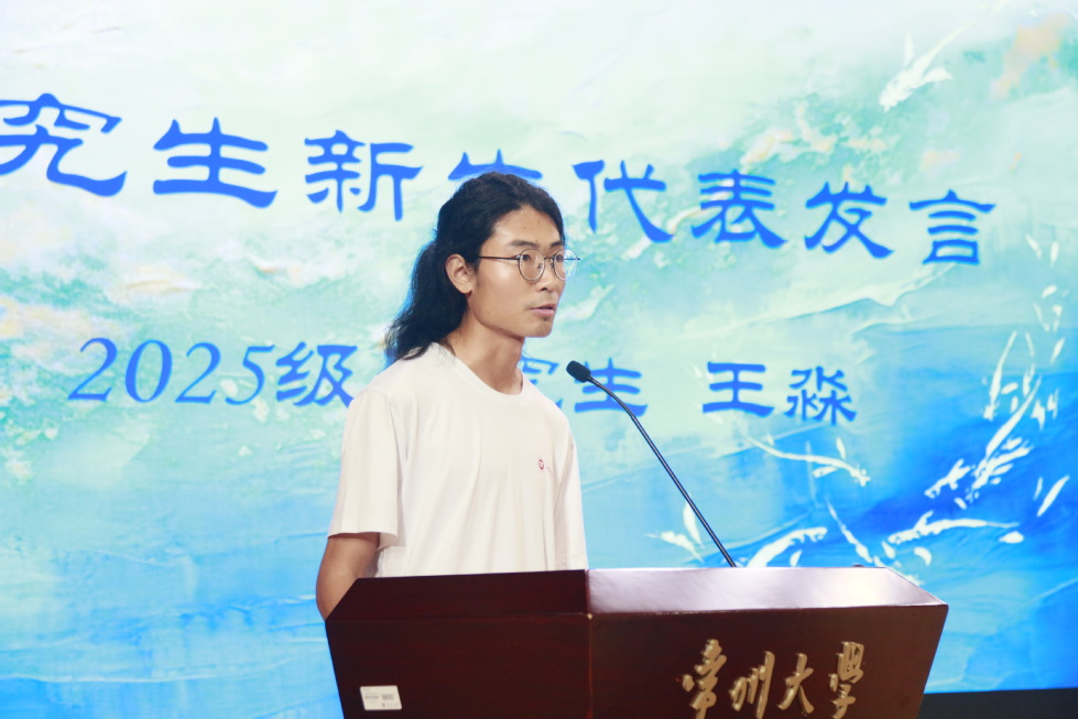 2025级国际中文教育专业硕士研究生王淼同学代表研究生新生发言。他从高一时初到常大的回忆谈起,和大家分享了求学的心路历程。他期望与大家一起“珍惜脚下最好的地方”,共度美好的校园时光,把握每个学习机会,多读书、善交友,沉心静气、踏实求索。期待每位同学都能有所收获,成长为更好的自己,收获铭记一生的有光记忆。