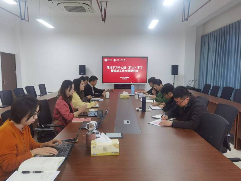 10月23日上午,周有光文学院党委在立言楼334召开理论学习中心组(扩大)学习暨统一战线工作专题会议。会议由学院党委书记焦洁庆主持,学院党委委员、院长助理,党政办主任、组织员,学工办主任、辅导员参加会议。