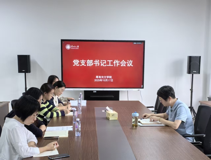 2025年10月17日,周有光文学院在立言楼334会议室召开党支部书记会议。党支部书记、学工办主任、组织员参加会议,会议由党委书记焦洁庆主持。