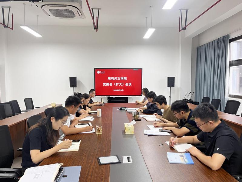 9月26日上午,周有光文学院召开党委会(扩大)会议,传达学习习近平总书记关于深入贯彻中央八项规定精神学习教育的重要指示,学习贯彻中央、省委党的建设工作领导小组会议精神,总结学院学习教育,研究部署巩固拓展学习教育成果、锲而不舍落实中央八项规定精神、推进作风建设常态化长效化工作。全体党委班子成员、行政学工教师参加会议。党委书记焦洁庆主持会议。