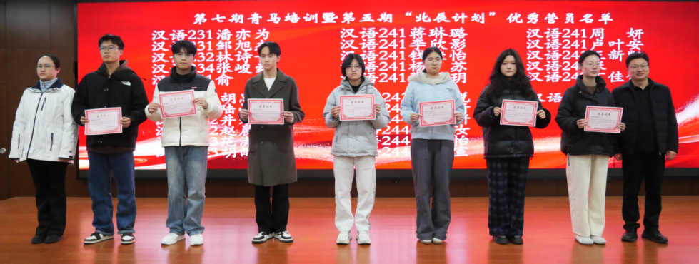 开班仪式在庄严的国歌声中正式拉开序幕。张燕红总结第七期青马培训情况并介绍第八期培训安排。赵雅婷宣读第七期青马培训班优秀营员名单。陈启迪、宗佳瑛为第七期青马培训班优秀营员颁发证书。上一期优秀营员代表、汉语231班潘亦为同学发言,他结合自身经历,从深化理论学习、勇于开展实践、积极交流互动三方面分享心得感悟。