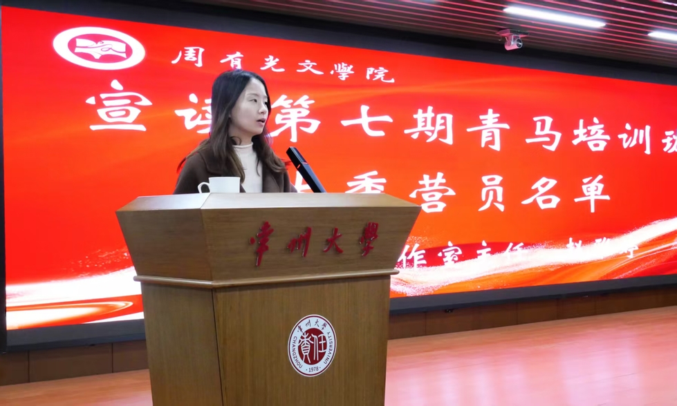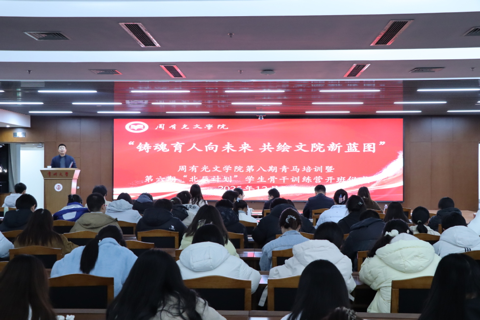 12月8日晚,我院在西太湖校区图文信息楼四楼白云报告厅成功举行“铸魂育人向未来,共绘文院新蓝图”——第八期青马培训暨第六期“北辰计划”学生骨干训练营开班仪式。校党委组织部副部长陈启迪,校团委组织宣传部部长宗佳瑛,院党委副书记嵇炜,院学工办主任张燕红,院电影工作室主任赵雅婷出席本次活动,我院全体新生及团学骨干参加活动。仪式由院团委副书记程向君主持。