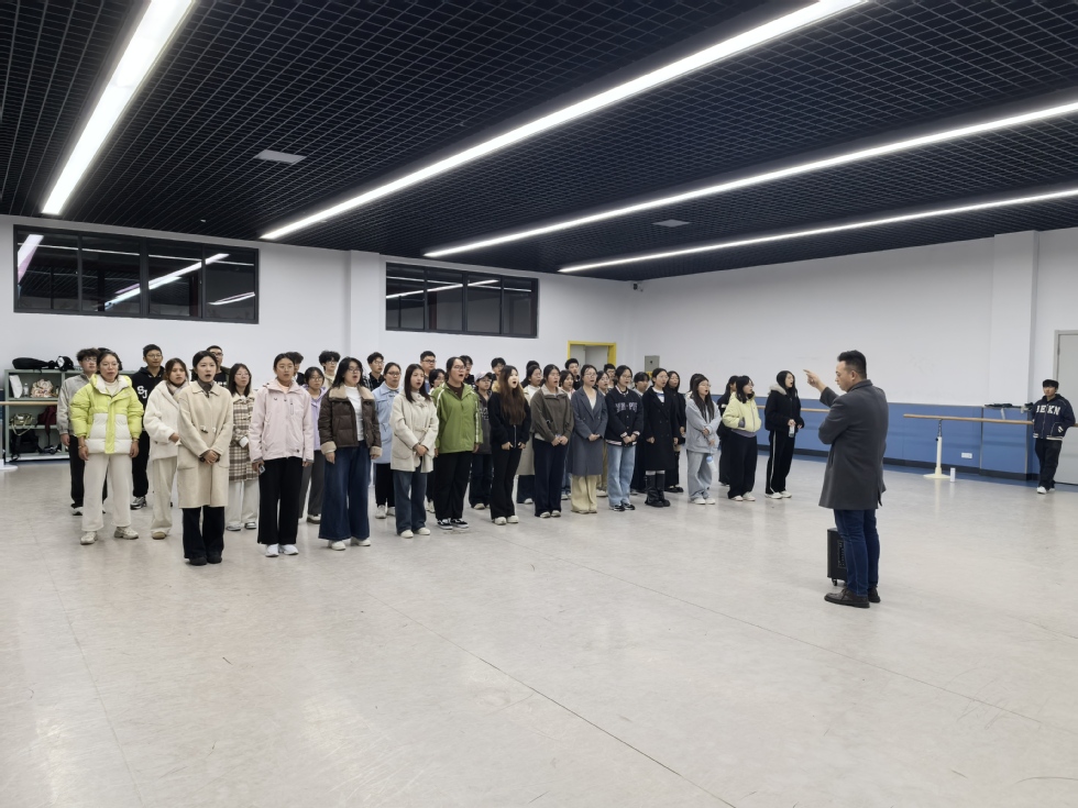 为迎接即将到来的学校“12.9”红歌大合唱比赛,展现学院学子昂扬向上的精神风貌与爱国情怀,全面提升参赛队伍的合唱艺术水平与舞台表现力,我院近期正积极组织、紧锣密鼓地开展赛前集训。近日,学院特别邀请学校音乐学院资深声乐指导李继祯老师莅临排练现场,为参赛同学们进行专业、细致的艺术指导。