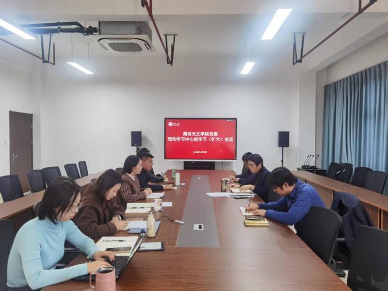 12月3日,周有光文学院召开理论学习中心组学习(扩大)会议,围绕习近平法治思想与依法治校主题开展专题学习。学院领导班子成员、行政及学工条线全体教师参加会议。会议由党委书记焦洁庆主持并领学。