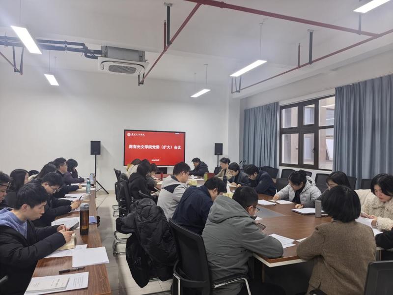 3月18日下午,周有光文学院召开党委(扩大)会议,深入推进树立和践行正确政绩观学习教育。学院全体领导班子成员、教工党支部党员参加,会议由党委书记焦洁庆主持。
