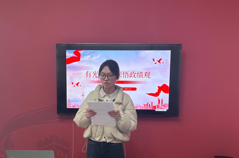 3月25日下午,周有光文学院学生党支部在研习书院举行“有光党课·深悟政绩观”专题党课。学生党支部党员和入党积极分子参加,会议由学生党员徐新雨主持。