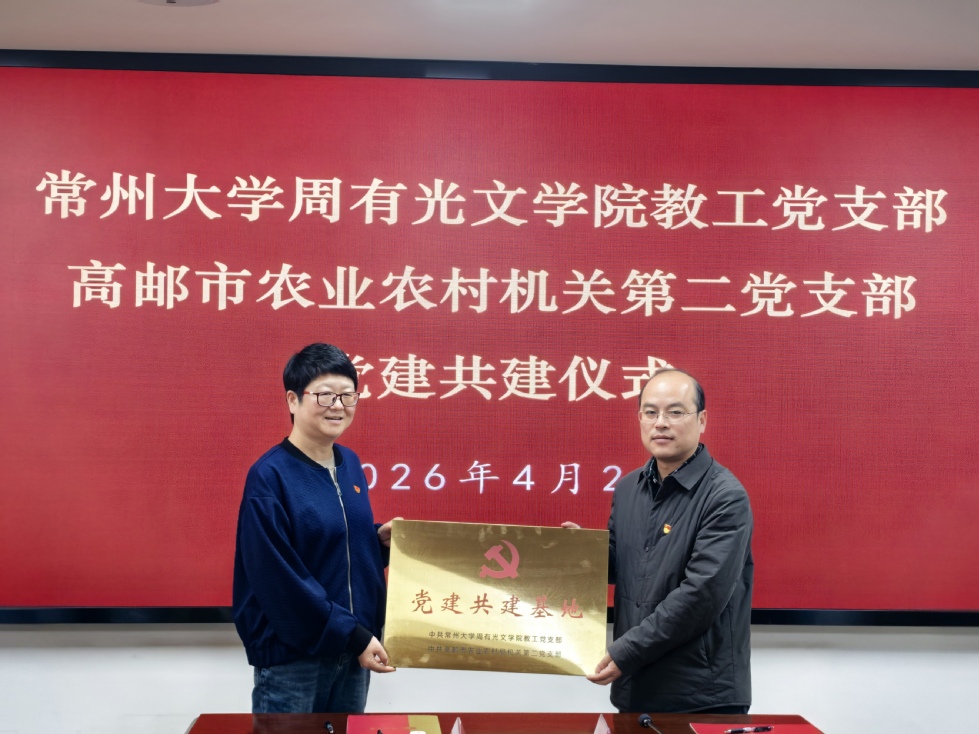 活动中,祈从春介绍了高邮市农业农村局及高邮农业概况,葛金华介绍了周有光文学院基本情况。双方将探索“文化赋能产业”新路径,实现资源共享、优势互补。随后,双方代表签署了党建共建协议,并授党建共建单位牌匾,明确在组织共建、人才共育等方面深化合作。