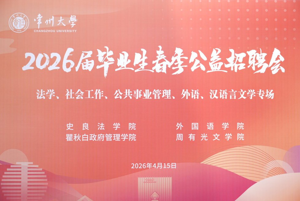 4月15日下午,常州大学2026届毕业生春季公益招聘会在西太湖校区体育馆二楼顺利举行。本次招聘会由周有光文学院、外国语学院、史良法学院及瞿秋白政府管理学院联合举办。