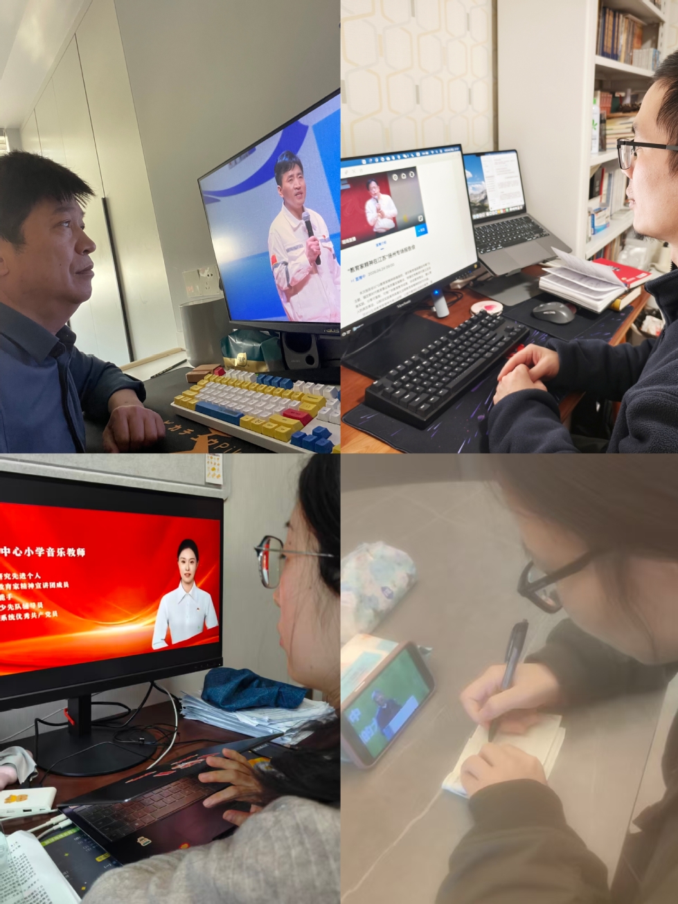 宣讲会上,优秀教师代表结合自身经历,以朴实语言、鲜活案例,生动诠释了教育家精神的时代内涵与育人价值。感人至深的教育故事,引发在场教师强烈共鸣,凝聚育人共识。收看结束后,教师们紧扣宣讲内容,围绕师德师风建设深入交流研讨。大家一致表示,将以榜样为镜,坚守教育初心,涵养高尚师德,把教育家精神内化于心、外化于行